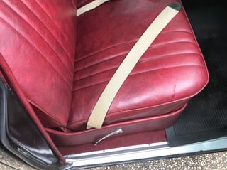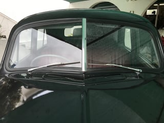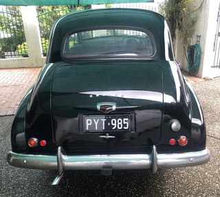 In 2012, the Holden was bare metal restored and repainted in 2 pack Black. The car showed nil rust or accident damage. At the same time the interior was retrimmed in NOS red trim, hood lining, carpets, GM vinyl floor mat while the original doors cards were retained. The dash is original and the steering wheel was restored. The split front windscreen was replaced at the same time with modern Triplex safety glass.