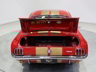 Price: $94,990 VIN: 5R09T179369 Engine: T - 200 6 Cylinder Transmission: 5 - 4 speed manual Paint: J - Ragoon Red Trim: 26 - Black Build: 19R - April 19, 1965