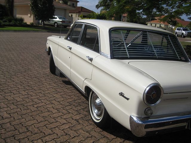 Time warp all original Polar white/champagne trim 1965 XP Ford Fairmont with a genuine log booked 69,300 miles on the clock. Matching numbers 200 CID 6 cylinder and 3 speed column auto in absolute original untouched condition. Factory disk brakes on the front. Unmarked original trim, carpet, windlacing, glass, door rubbers, door cards etc. Ford NOS accessories include drivers door weather shield, sun visor, rear venetian, front and rear mud flaps (genuine ford), new hub caps (NOS), original jack and carry bag, as new white wall radial tyres all-round and original spare tyre. Original rubber boot mat with no holes or tears covered with a protective moulded carpet. Always garaged and never driven on a wet day. Original owners service book with a documented history from date of purchase in 1965. Three owner car. Gold Coast, QLD car. (Ref. 4468)
