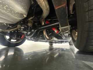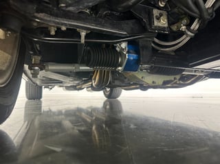 Gone is the factory slushbox and in its place is a modern TKO600 5 speed manual gearbox with a custom made stainless shifter and a McLeod clutch. At the rear is Ford's bullet proof 9 inch limited slip differential with a 3.25:1 ratio. Braking has been upgraded from drums all round to 4 wheel disc brakes by Wilwood. And steering and suspension have been upgraded with Total Control TCP RCKP-52 right hand drive Rack & Pinion power steering, front coils and rear leaf springs with Koni shockers all round. There is a 1 1/8’’ front sway bar and an adjustable 3/4’’ rear sway bar and the Fastback has been lowered 1’’ to be consistent with Shelby GT350 tuning.