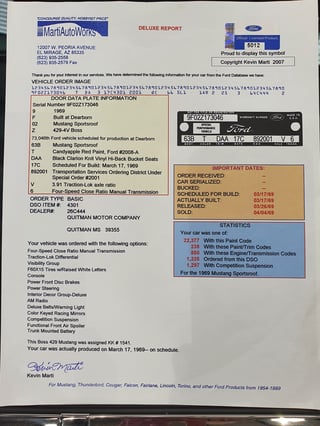 Price: Offer over $400,000 invited VIN: 9F02Z173046 Boss Build: KK 429 NASCAR 1541 Data Plate: 63B T DAA I7C 892001 V6 Build: March 17th, 1969