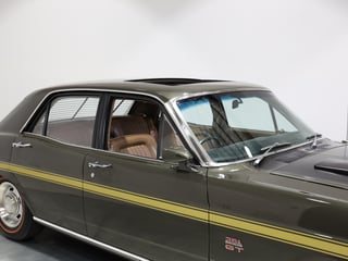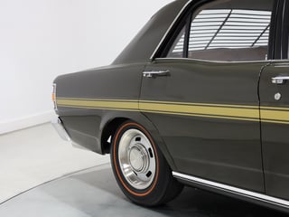 Full bare metal restoration in 2 Pack Reef Green in 2022 with new Light Saddle trim and Gold GT Super Roo striping. The GT is also fitted with Dynamat sound deadener installed in the cab. The underside of the GT is painted in correct GT spec protector with the correct diff paint and green shock absorbers. The GT is fitted with new bumpers, gutter and boot molds with polished original stainless and chrome. New glass throughout and new rubber kit fitted with GT spec wiper blades.