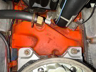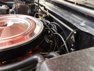 The matching numbers special 350 manual motor is completely intact with it's original date coded heads, 184 casting intake, original rare Quadrajet carby, genuine homologation upgraded air cleaner with extra breathing holes, original exhaust manifolds, Big Nut Brake Master, battery terminals, fuel lines and special Utilux clips. The original fan and special 350 fan spacer are still in place.