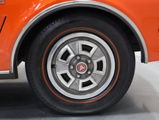 Riding on genuine homologation unique HT 350 rims with special cooling slots for racing, genuine mint unrestored Monaro hubcaps and Aquatread red walled tyres. All chrome is original with excellent genuine mouldings, grill and badges.