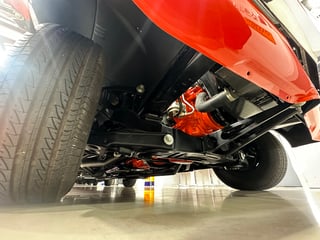 Gears are swapped via the original 350 Saginaw gearbox with high capacity bearings, original shifter assembly, special violet tail shaft and hydraulic clutch parts & brackets. The genuine 10 Bolt Chevy type LSD differential with 3.08 gears is there as are the radius rods. The Bathurst Monaro also features the raucous quad tip exhaust.