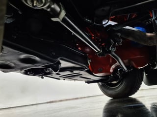 The underside of the car is all to factory specs including the factory purple tail shaft, reconditioned 10 bolt diff, the original cross member and original exhaust turn downs. The car features original NASCO mud flaps and genuine red wall tyres.