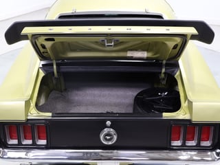 The interior is as it left the factory with high back seats in the rare Lime Green Vinyl, standard dash, Hurst shifter and tinted windows. The car is fitted with a 1970 AM/FM Mustang stereo with the original AM Radio supplied with the car. All glass is date code correct and all gauges are in working order. The Boss is fitted with the factory steering wheel in excellent condition and the interior seat trim, door cards, hood lining, crash pad and carpets are all in excellent condition. The Boss is showing 62,268 miles on the odometer.