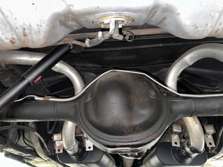 The underside of the car is in super clean condition and is presented in factory undercoat. The car is riding on factory Chrome black centred Magnum 500 rims shod with Goodyear Polyglas F60-15 GT radial tyres. The factory Space Saver spare and tools are in the boot.