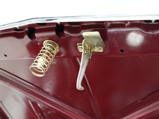 On the inside the XW has been re-trimmed in Parchment as Mist Gold is no longer available. A GT/GS steering wheel, GS dash with 8,000 RPM tacho and 140 MPH speedo plus correct Fuel, Oil and Temp gauges have been fitted. And a clock and AM/FM retro look Superfringe radio have been fitted. New seat belts, hood lining, carpets ... nothing has been left unrestored. You'll also note that all rubbers have been replaced and all door mechanisms rebuilt and cad plated. A rear window venetian has also been fitted and electric fuel pump.