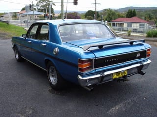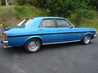 Starlight blue black trim genuine V8 top loader car now 4V 351 Cleveland, Edelbrock manifold, competition holley, extractors and 8 3/4 LSD diff. Power steering. Electronic ignition. Trimmer putting new XW GT basket weave inserts in now. 140 MPH speedo and 8000 tacho. Excellent straight clean car. Nov. NSW rego. Gosford car.