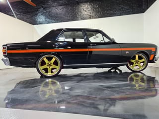 For sale is an older restored XW GT Falcon Replica built from a very late build 6 cylinder XW Fairmont. Now running a 400 Hp 351 2V Cleveland with 650 Holley Vac secondaries, roller rockers, gear drive, electronic ignition, extractors through to an a 2 1/2" exhaust with dump pipes at the diff, 4 speed Toploader gearbox with reverse pattern and 9" 28 Spline 3:1 ratio drum brake rear end.