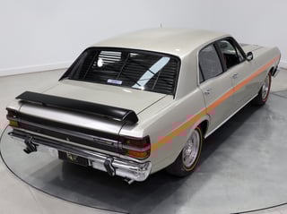 Sold originally through Frendeley Motors, MacKay, QLD, this GT was factory optioned with the Superfringe radio and comes with 5 genuine Bathurst Globe wheels with Red Wall tyres plus a set of widened riveted 5 Slot rims, caps and dress rims with good tyres. The GT is also fitted with Phase 3 front bib spoiler and boot spoiler, Phase 3 Vacuum Tank, rear venetian blind, bumper over riders, dual sports tear drop mirrors and a 36 gallon fuel tank.