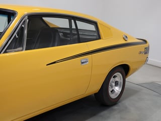 For sale is a meticulously restored Big Tank E38 Charger in signature Hot Mustard 2 pack and wrapped around a perfect original straight body, with impeccable Black interior. The feature car for the Australian Muscle Car Magazine article on the E38 Charger and also featured in Restored Chargers Legend Series, this E38 underscores the genius of Chrysler Australia's product development team. With its super sexy lines, wide sports wheels, the clever use of bright metal, the blunt tail with its inbuilt spoiler and, roofline ribs running down past the rear window conspire to make the E38 Charger one of the best looking Aussie muscle cars ever built.
