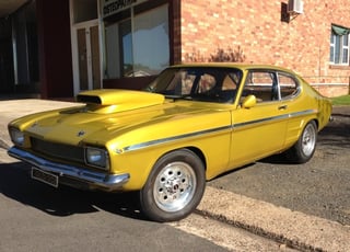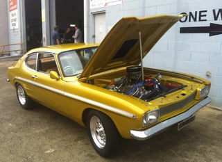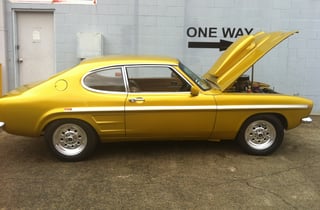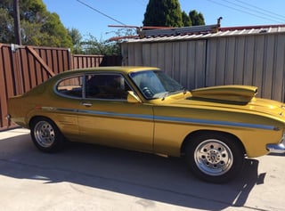 Genuine Capri 3000 V6 now modified with a 680HP V8 351 Windsor stroked to 408 (480HP at rear wheels), C10 auto fully manualised and reverse shift pattern, 5800 stall and 9" 4.11:1 mini spool. Custom metallic gold paint resprayed 2012 and custom tan leather trim. Custom leather dash with Autometer gauges. 15 x 8 Weld wheels and front runners. NSW rego. Sydney car.