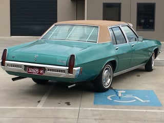 Genuine original matching numbers 1971 HQ 350 Statesman Deville. Super rare car in Taormina Aqua with beige vinyl roof and Antique saddle interior. Genuine 350 Chev engine with factory exhaust manifolds and Turbo 400 transmission. Rebuilt factory fitted intergrated A/C works perfectly. Original colour repainted approx 8 years ago. Factory vinyl roof, sun visor, rear venetian blind. Original selling dealer decal on rear windscreen. Bench seat and column auto with Power steering. Immaculate interior with original radio. (Cd player also in glovebox) Factory electric windows. Original Holden Statesman manual/handbook. Rust Free car. Certified production report (see pic) states how it left the factory and has not been molested. This is a genuine car that starts and drives well. Langwarrin, VIC car. (Ref. 4459)