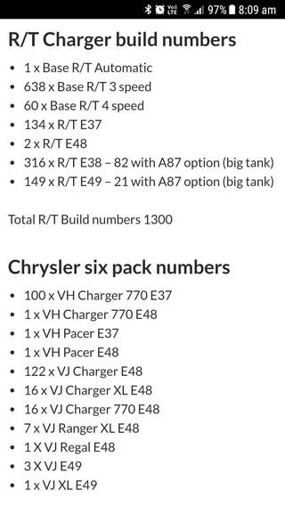 1971 VH Valiant E38 R/T Charger .. Big Tank