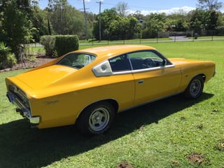 Chrysler Australia PRESS TEST car!!!! Featured in 1972 Wheels Magazine and was 1972 Wheels Car Of The Year. One of only 125 E55 VH Chargers ever built! Original Sunfire Yellow. Factory matching numbers 340 V8, 727 Torqueflite auto and LSD idff. Factory power steering, working Air conditioning, factory tinted glass in perfect condition and NOS door/roof vinyl. Excellent original unrestored black and white interior. Bare metal restored about 5 years ago and has just had a painter buff and polish the car and shows super nice. The body is straight and damage/rust free. Original seats are excellent and recline and tilt forward. Console is very good as is the dash pad. All gauges work and look good. The motor has been professionally rebuilt by a Mopar expert on the Gold Coast and is very strong. Original exhaust manifolds and carby go with it. Auto and diff all rebuilt and front end is great. This is one great Charger to drive and is one of only a handful left. Brisbane, QLD car. (Ref. 4821)