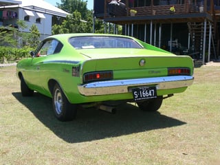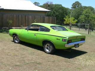 Rare combo VH Charger XL in Olive Green Metallic originally a 245 Hemi and 3 speed floor shift manual and converted 20 years ago to a 1978 HP 265 Hemi and 4 speed manual with 3.23 diff. Repainted in Lime Green with all original upholstery in very good condition.