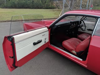 Rare to find genuine VJ Charger XL Sportsman. One of only 399 limited edition Sportsmans produced. Restored 12 years ago in red with a retrim in genuine red leather trim. Door cards are original Sportsman package. Mechanical refresh 3 years ago with rebuilt bottom end, new bearings, crank, 500 Holley carby and reconditioned 4 speed Chrysler gearbox. Showing 47,187 klms. Cheviot W35 style mags with good rubber. A good clean body and excellent mechanicals make this a great driver for the Mopar fan with the potential to restore to Sportsman specifications in the future. Kangaroo Valley, NSW car. (Ref. 5100)