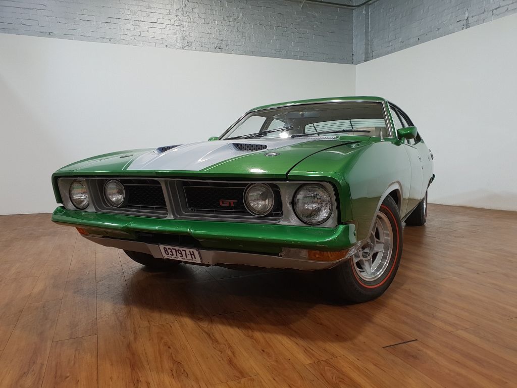 Now this is a very nice combo XB GT! Fully factory optioned and matching numbers Emerald Fire XB GT 351 Cleveland running the sought after factory Top Loader 4 speed gearbox. Nicely spec'd from new with P2 Parchment trim with cloth inserts, Factory wind-back Golde SUNROOF, Air cond, Power steer, Superfringe radio, Dual sport mirrors and tu-tone bonnet. Older paint job but still presents well. 123,932 miles covered with Ford Verification letter. Mechanically spot on and a very nice car to drive with the old school charm and exhaust burble along with all the comforts of a modern Grand Tourer. In our Kingsgrove, Sydney showroom. (Ref. 5081)