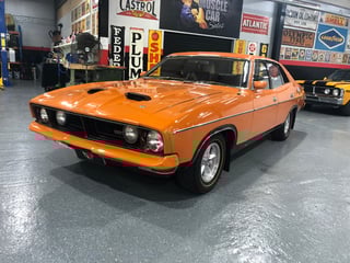 Ripper unrestored XB GT Falcon in Burnt Orange with Walnut Glow highlights and Black trim. All matching numbers 351 2V Cleveland and factory 4 speed Top Loader manual gearbox. Interior is all original including carpet, door and seat trims. Optioned with Sports road wheels and Radio/Cassette player. LOG BOOKS and Owner's manual with an original super low 49,161 miles from new. Registration paperwork since first registration in Adelaide. Original keys and number plates as per Log books. Original Ford carpet tag as per factory. This is a very nice original and documented example of the XB GT Falcon. Extra desirable being manual and a great period colour combo. Come and inspect this car in our Kingsgrove, Sydney showroom. Open 7 days. (Ref. 4878)