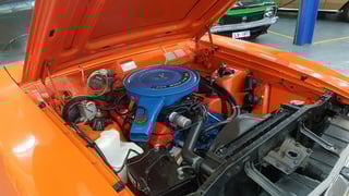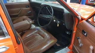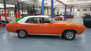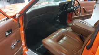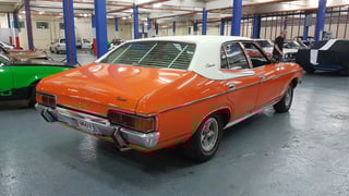 Stunning rare factory Tango Orange XB V8 Fairmont. Factory matching number 302 Cleveland and column shift auto. Highly optioned with Outback pack, Protection pack, power steering, Sports Road wheels, driving lights and that wonderful and now highly desirable Continental vinyl roof. Rust free turn key mostly unrestored survivor. A very desirable car in excellent condition. Original engine bay. Mint original interior & boot compartment. Original rear window dealer sticker, number plate frame and original Queensland black and white enamel number plates. Untouched original undercarriage with all factory markings. 3 owner car with 139,396 klms from new. Drives like a dream. In our Kingsgrove, Sydney showroom. (Ref. 4783)