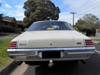 1976 HX Holden Kingswood V8 ex NSW Police car. All matching numbers 4.2L V8 column Trimatic. Factory power steering, delete radio and the grommets for the Police lights and radio. Dealer vinyl pouch, log books with 323,000 klms from new. Original two sets of keys. Full service history. Original Chamois paint repainted on the outside only and all original brown trim. Sold new by Boyded Holden in Bankstown with original salesmans Business card still in pouch. Monaro GTS steering wheel and wheels in immaculate condition plus original wheels with dress rims and hub caps. Brand new tyres all round. Drives Perfect. VIC registration. Melbourne, VIC car. (Ref. 4755)