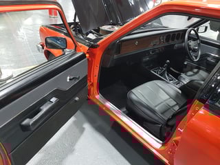 Genuine factory Mandarin red LX Torana rebuilt into a very nice SL/R 5000 Torana Replica. Stunning exterior paint is matched with genuine slate black SL/R trim. Fitted with a strong 308 V8, 4 speed M21 gearbox and Banjo diff. Full A9X flare kit, aluminium drop tank cover and A9X style rims. Priced to sell quickly. NSW registration until late May 2018. Come and inspect this Tory in our Kingsgrove, Sydney showroom. (Ref. 4912)