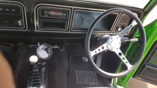 The green machine! 1977 Australian delivered RHD F-100 Pick up truck running a gas 351 Cleveland, Hi-rise manifold, extractors to quad dual exhaust with side pipes, C4 auto with B&M shifter and 9" LSD. Stock interior with added tacho. Brand new front disc brakes with slotted rotors and drum rear, Bonspeed alloy mags and brand new tyres. Gas system plated 2012. Covered 173,000 Klms from new with 12 months NSW rego. Great cruiser, promo truck or super cool tradie vehicle. Sydney car. (Ref. 4798)