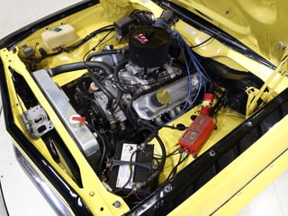 Pop the bonnet and you will find a tough built Holden V8 engine. When the original engine threw a rod out the side of the block, the current owner wanted to make sure he built a faster one. He went to Walkinshaw and purchased a six-bolt main block and then sent it away to Vic Currie Race Engines in Taree NSW. They stroked it to 383ci and fitted it out with all Harrop internals, Crane roller rockers, Edelbrock manifold and Holley double pumper carby. The engine is paired to the factory four-speed M21 manual transmission with Hurst shifter.