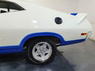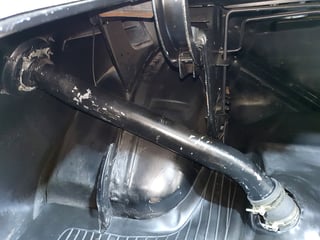 The mods included reworking the rear wheel inside housings to a maximum of 47" to accommodate the larger rubber of the race cars plus the fitment of a LHS only tramp rod due to the fact that the Bathurst circuit was generally a left hand cornering track. The front spring towers were reinforced with solid bracing and modifications were made to the number two suspension cross member. In addition, an unique fibreglass front spoiler was sourced from Bob McWilliams, designed to funnel air onto the front disc brakes. Unique body hugging Scheel KBA90018 front seats trimmed in black corduroy/cashmere cloth were fitted and the Bathurst cars were fitted with a transmission oil cooler, engine oil cooler, an idler arm brace, twin Davis Craig thermo electric radiator fans, a heavy duty radiator and that massive functional curved fibreglass bonnet scoop.