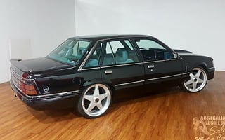 Originally a Cedar brown VK HDT Brock Calais Director. Now modified and repainted in stunning Tuxedo black with original blue Calais interior including full electronic dash. Running an injected VR 304 V8 with mild cam, extractors 4 into 1, dual X-pipes with HDT T5 gearbox and 10 bolt 3.08 LSD 28 spline. Factory power steering, A/C (not fitted) and electric windows. Boot mounted battery, HDT Bilsteins, front VT slotted Commodore brakes and VR slotted rear brakes. 20 x 8" Momo star replica rims on 245/30/20 rear and 235/30/20 front tyres. Drives beautifully!!! HDT-085 NSW registration - 11 months and plates included. In our Kingsgrove, Sydney showroom. (Ref. 5013)
