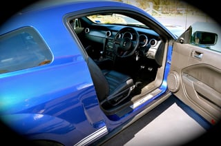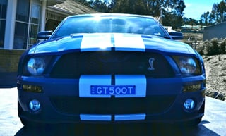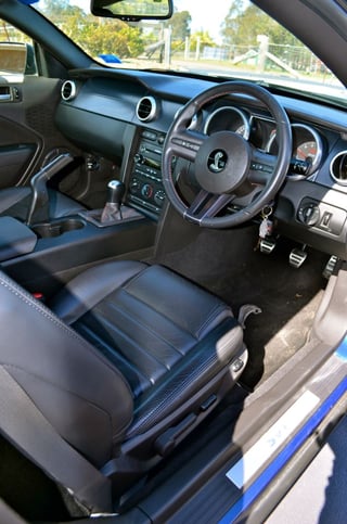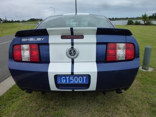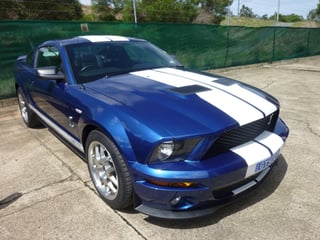 2008 Ford Shelby Mustang in Vista Blue with black accent leather trim. Fully Optioned and just converted to RHD (2 year warranty). 35,600 klm. 5044cc Supercharged V8 and 6 speed manual transmission. One owner with full service history. Fully factory optioned including the "Shaker 1000" Premium Sound System. Lake Macquarie, Central Coast, NSW car.