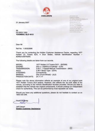GMH authenticated LX Genuine SL/R, 6cyl 4speed. Drives very strong. Very straight, Super Mint paint. Unmolested in every way right down to the original SL/R wheel trims. Full SL/R interior & sway bars. New tyres all round & RWC & reg supplied upon sale. QLD rego.
