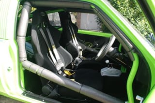 2 SAAS Racing Bucket Seats (retractable), rear seat has been removed as no access with roll cage, B & M Pro Ratchet Shifter, Mailor HI-FY Digital Ignition System, sports steering wheel, custom 6 point weld in Adra spec roll cage with removable extrusion bars. Fully engineer approved and plated. Custom upholstery with embroidered HRT emblem on doors.