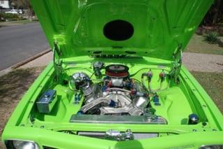 Heavily modified V8 308 Holden motor, solid cam, Demon carb etc, dyno to 290 at rear wheels.