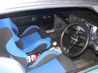 TRIM - Monza race seats 5" monster tacho with shift light. 3 gages under dash in crome pods. water temp oil and boost. vdo mps cd with four speakers. Black hood lining and rear seats.