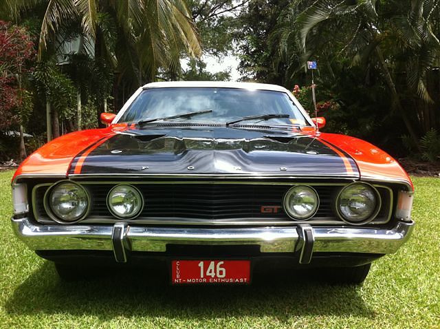 Heavily optioned Pepper red XA GT Falcon in excellent restored condition throughout. Restored in 2009. All matching numbers with 351 Cleveland, C4 auto and 9" diff. Factory sunroof, beige vinyl roof, P/S and A/C. Original blue rocker covers and air cleaner included. Ford verification letter. Darwin, NT car.