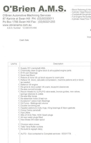 If the Buyer is satisfied with the car and a price is agreed to with the Seller a formal tax invoice is prepared by AMCS and sent to the Buyer for payment to the AMCS audited Trust Account. AMCS also receives a formal Bill of Sale from the owner stating the car is free of encumbrance and noting banking details for the transaction. Once AMCS receives the total payment cleared into its trust account a transfer is then made to the Seller.