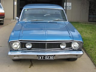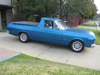 Factory Starlight blue XY Falcon 500 ute. Running a 302 Windsor and 4 speed top loader and 9" LSD. Restored 20 years ago and done 1000 miles since. Original paint in engine bay and door jams. 90,471 miles from new with log books. Original light blue trim. Absolutely rust free car. Mini lites with 225 x 60 x 15 tyres. Wagga Wagga, NSW car.