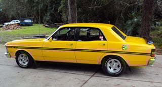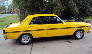 Yellow glo black trim XY GT Falcon replica. Built from V8 Futura this car has all the GT features including 351 Cleveland, 4 speed top loader and 9" diff. Full GT dash, XA GT steering wheel, metal shaker. Paint is good with very minor rust. Bathurst style Globes with good tyres. Heaps of receipts for new parts, suspension work and mechanical work. NSW roadworthy supplied if required. Sydney car.